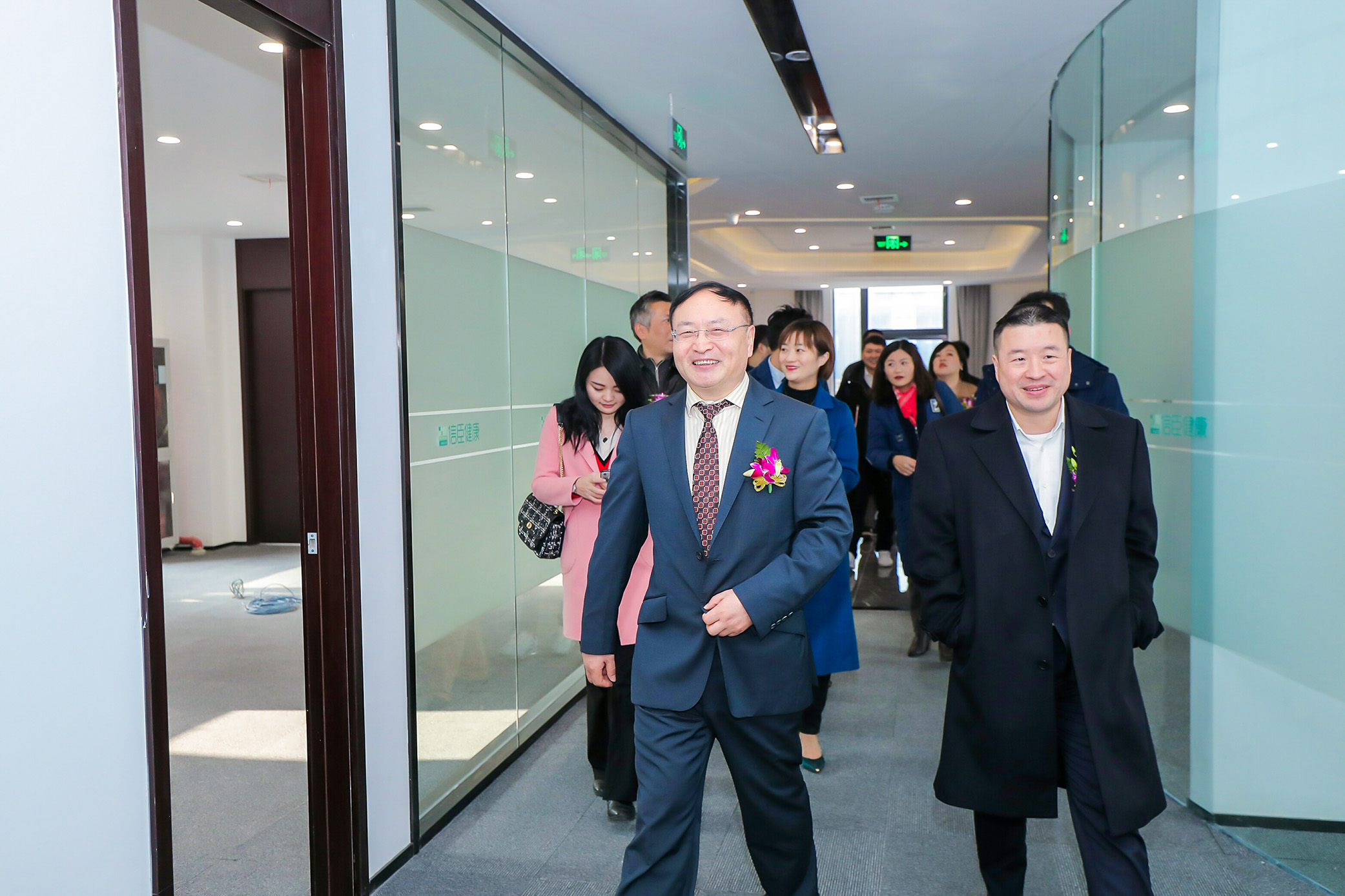 启用仪式圆满之后,王鑫董事长亲自陪同一众领导及贵宾参观了信臣健康江北新区运营中心,详细介绍了生产研发、市场销售、产品展示厅等重点区域,并合影留念。