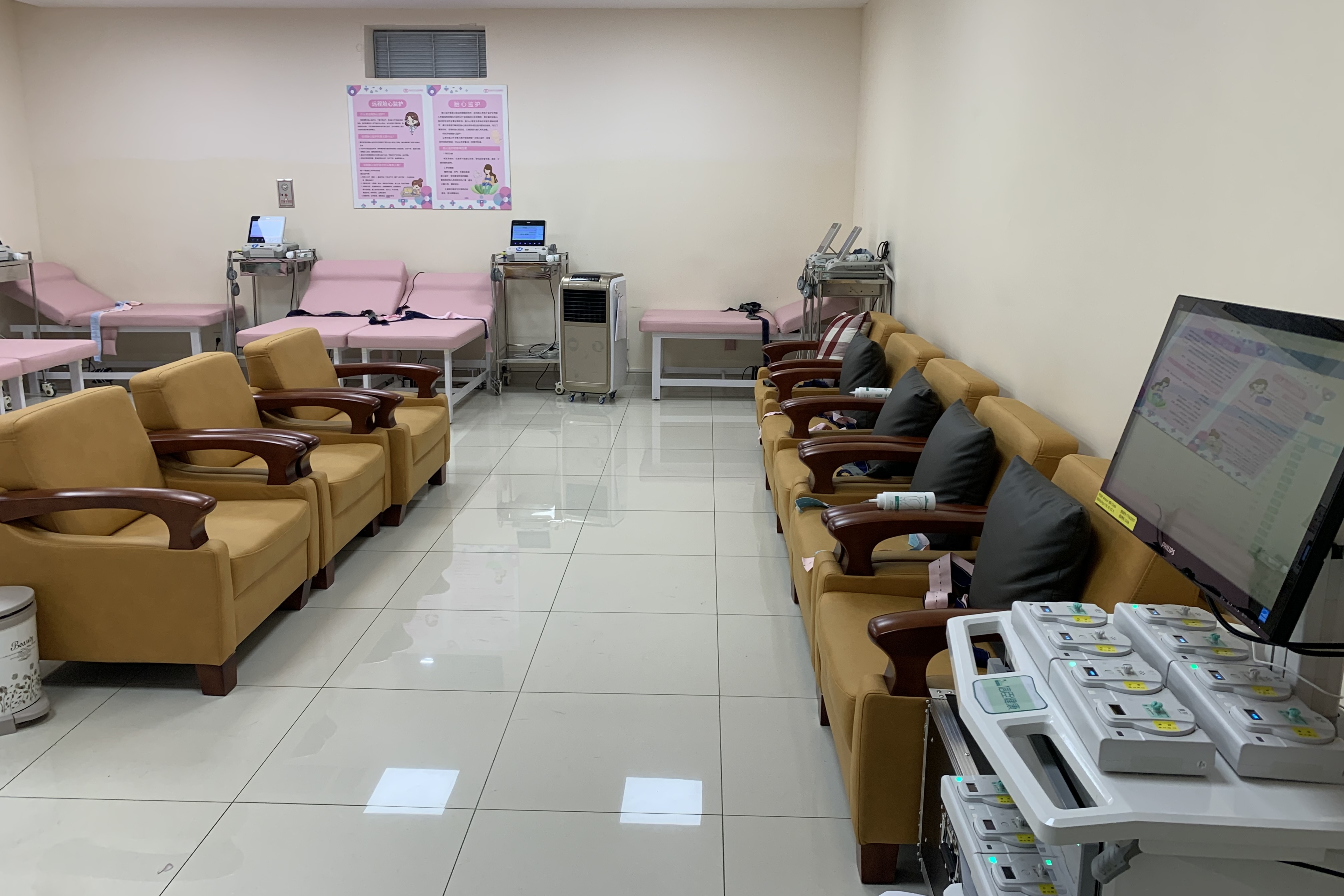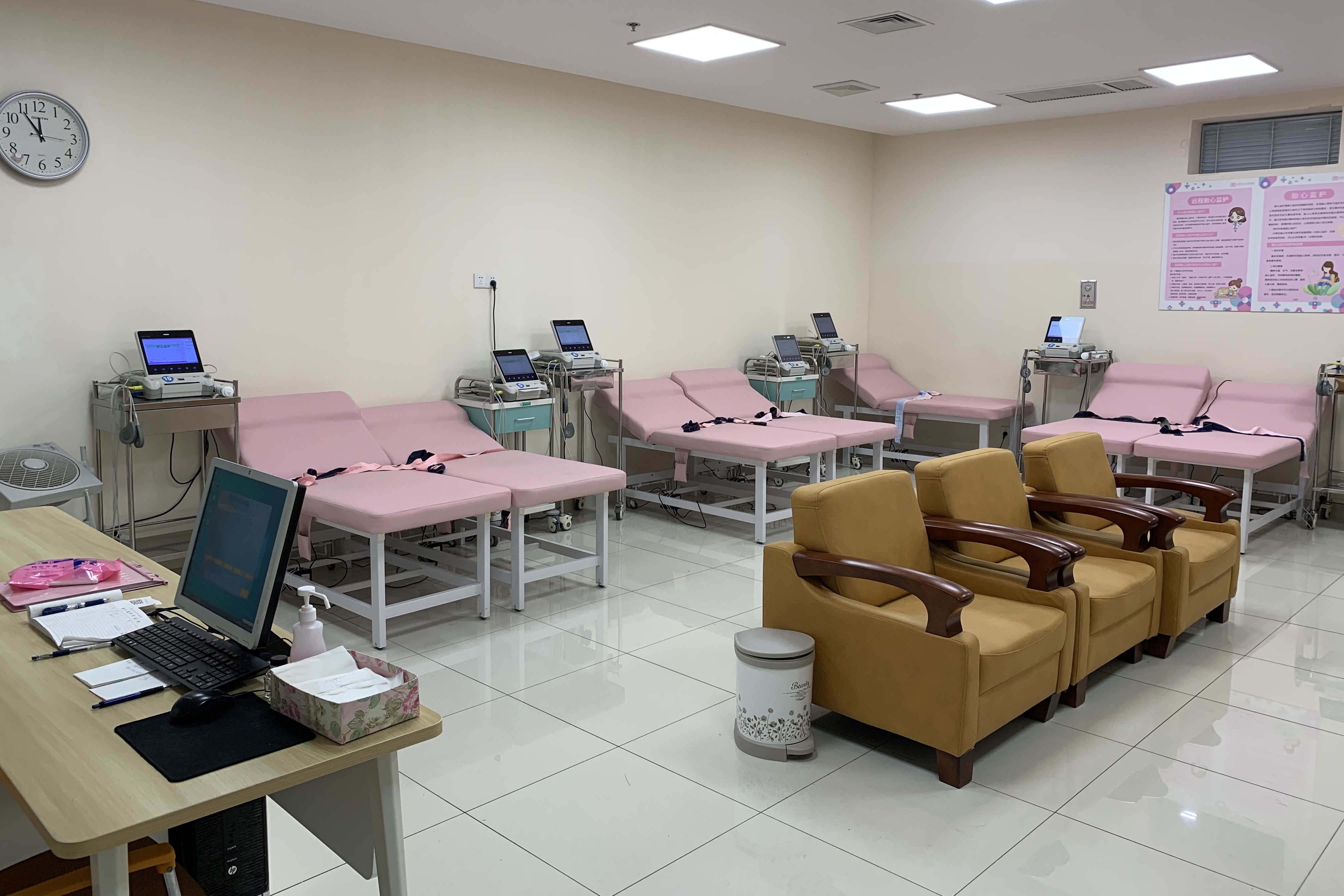 该监护中心由信臣健康承建并运营,使用中央监护(院内一体化)系统和喜芽胎儿监护仪。中心可同时多床位监护,通过无线技术将监护信息传输到工作站进行管理,支持多床位监护,无限扩展。同时孕妈妈可自行操作监护,解决了监护量大、医护人员工作繁琐等问题。