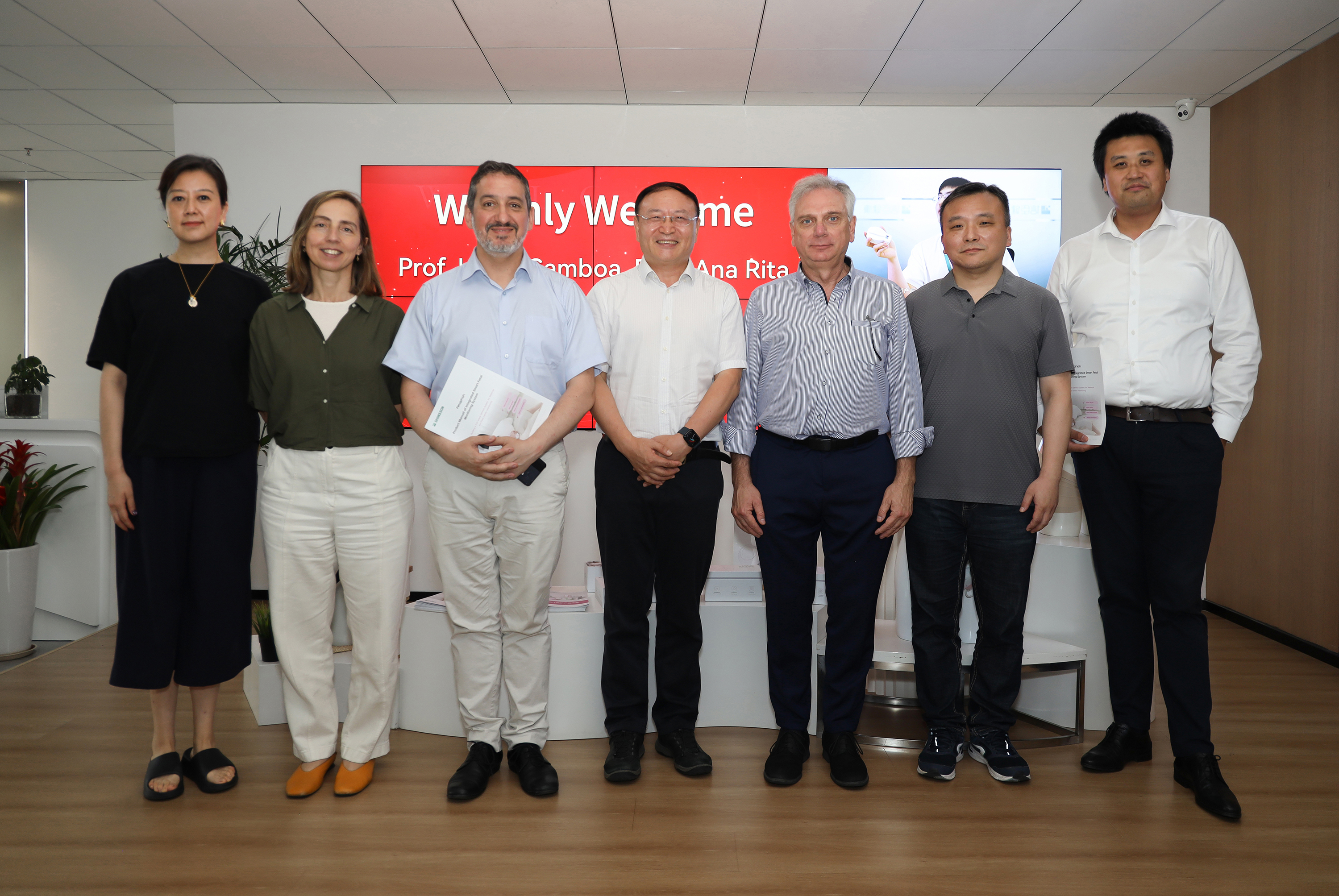7月30日上午,Prof. Dr. Hugo Gamboa,Prof. Ana Rita,Prof. Giovanni Saggio,刘辉教授一行来到信臣健康考察交流。