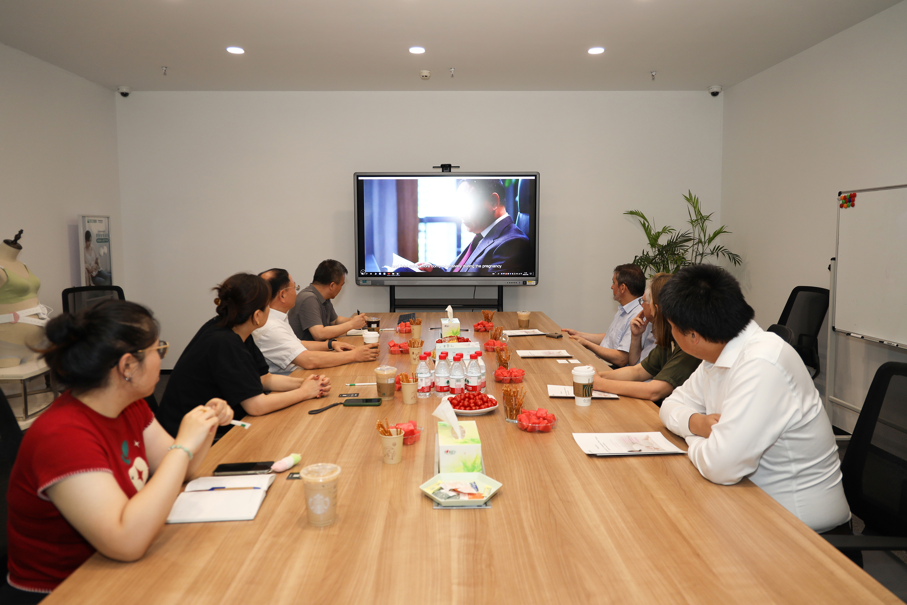 王鑫董事长向大家介绍了自2018年3月Hugo教授首访南京以来,这七年信臣健康的发展历程,期望接下来能够与Hugo教授团队建立更加深入的项目合作。